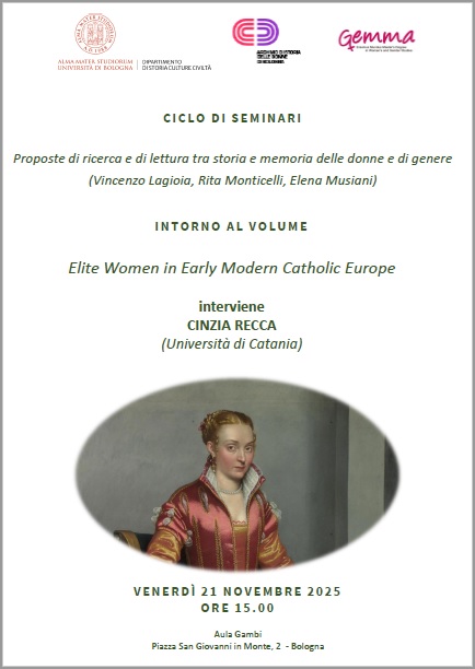 Ciclo di seminari: Proposte di ricerca e di lettura tra storia e memoria delle donne e di genere (Vincenzo Lagioia, Rita Monticelli, Elena Musiani).