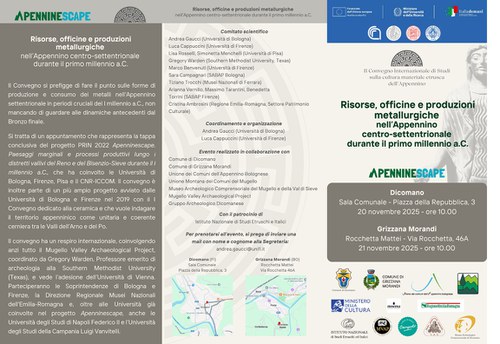 mancando di guardare alle dinamiche antecedenti dal Bronzo finale. Si tratta di un appuntamento che rappresenta la tappa conclusiva del progetto PRIN 2022 Apenninescape. Paesaggi marginali e processi produttivi lungo i distretti vallivi del Reno e del Bisenzio-Sieve durante il I millennio a.C., che ha coinvolto le Università di
