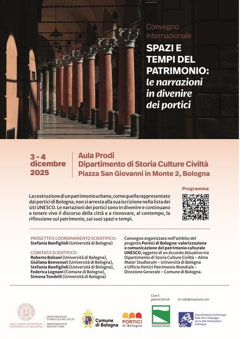 Convegno organizzato nell’ambito del progetto Portici di Bologna: valorizzazione e comunicazione del patrimonio culturale UNESCO, oggetto di un Accordo Attuativo tra Dipartimento di Storia Culture Civiltà - Alma Mater Studiorum - Università di Bologna e Ufficio Portici Patrimonio Mondiale - Direzione Generale - Comune di Bologna.